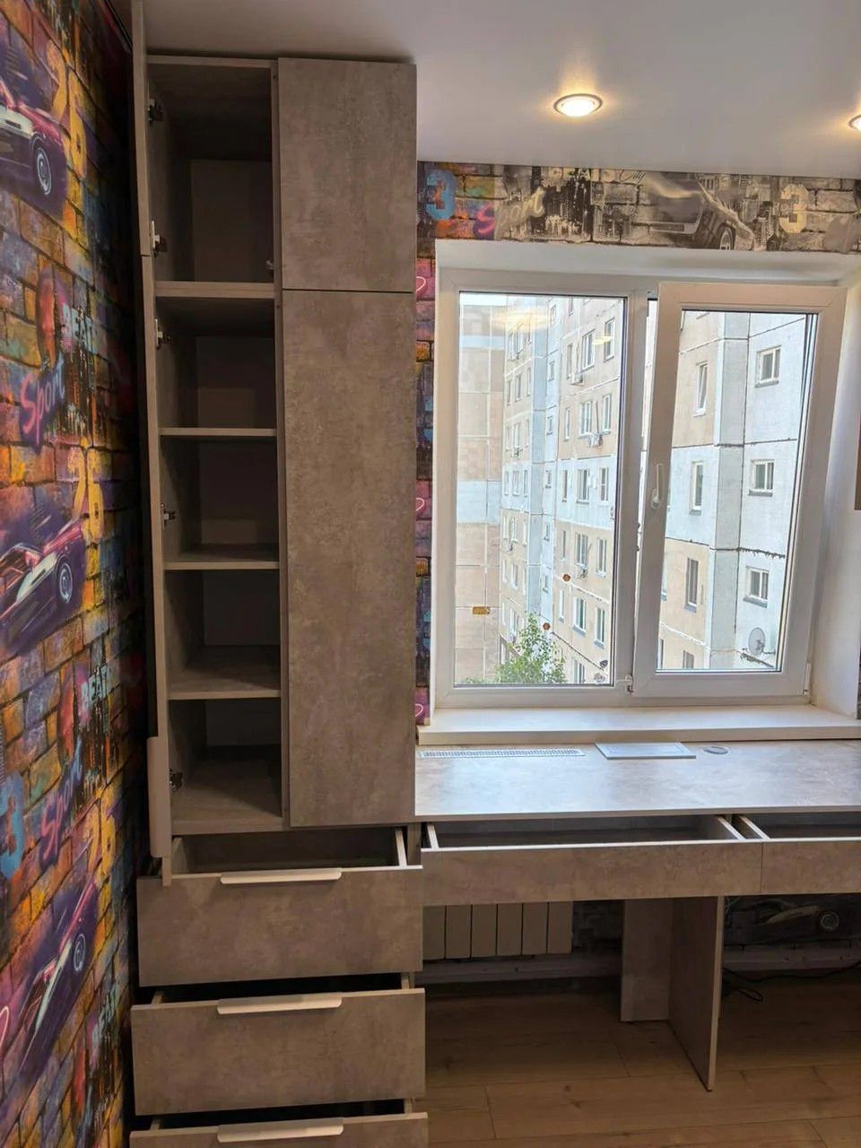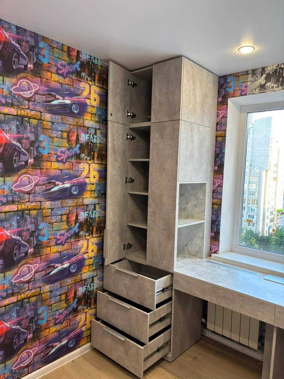 - Открытые полки: Быстрый доступ к часто используемым вещам и учебникам.