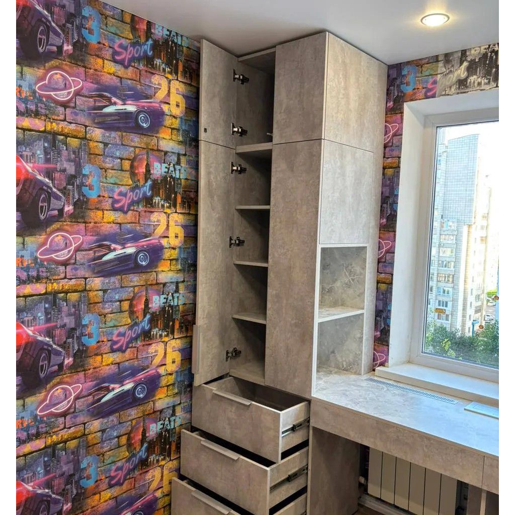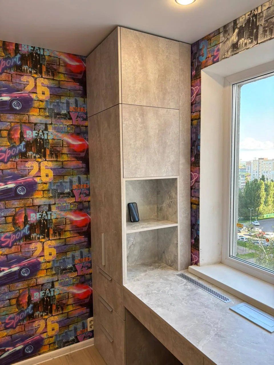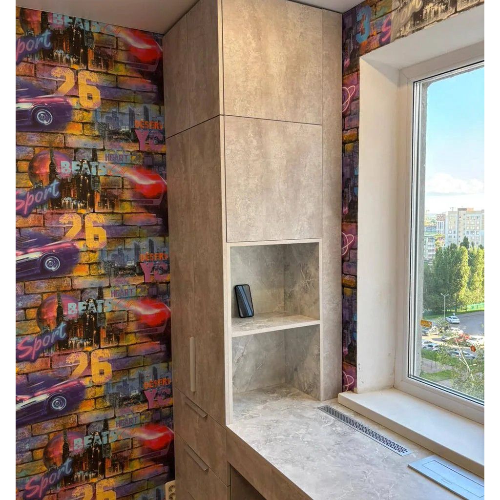 - Светлая палитра: Сочетание текстур «Цемент» и «Венис» визуально расширяет пространство и добавляет воздуха.