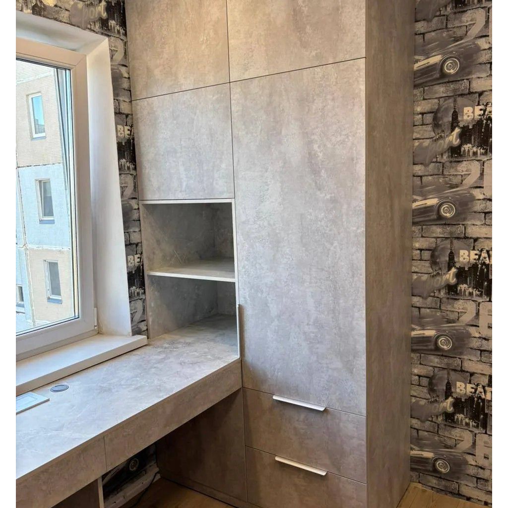 - Корпус: ЛДСП «Увадрев цемент светлый U3719» — текстура светлого бетона придаёт интерьеру современное звучание и практичность.