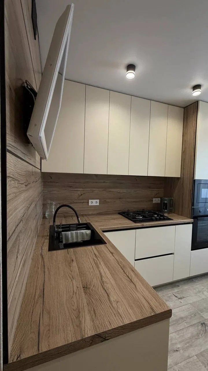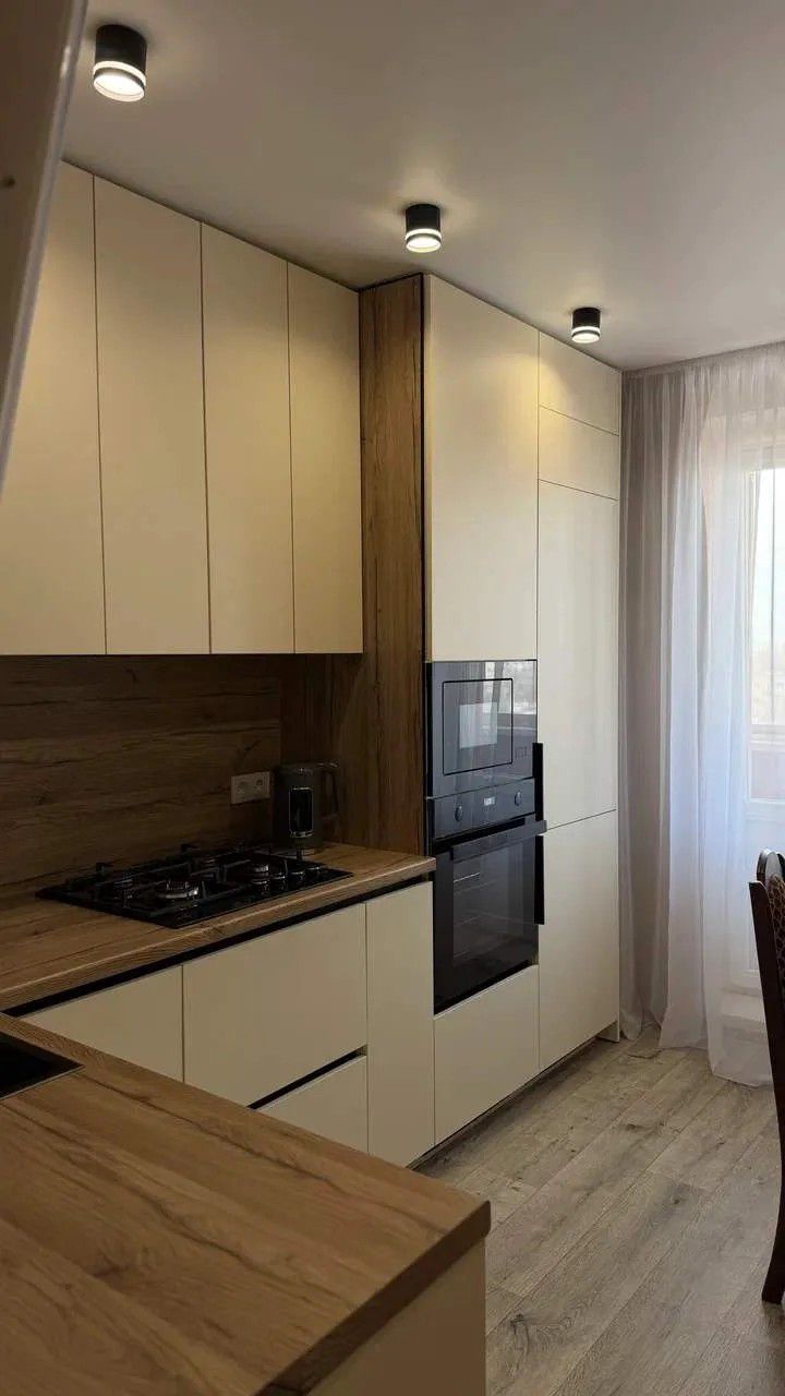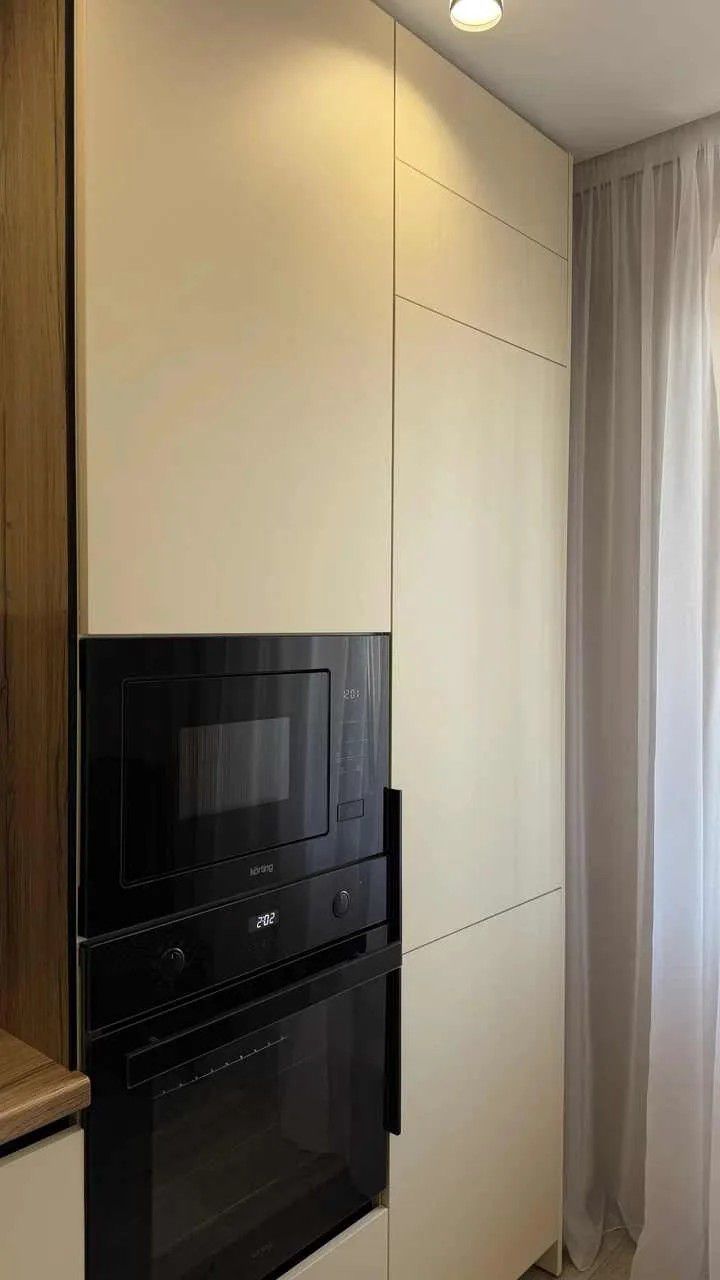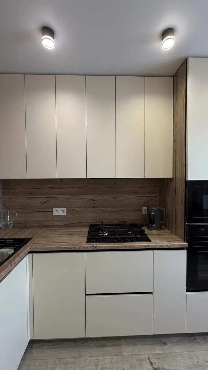 Эта кухня — как дорогой сердцу альбом: каждый элемент на своём месте, каждый материал подобран с вниманием к вашим повседневным ритуалам. Сдержанная эстетика кремовых фасадов, строгий чёрный профиль и непрерывный древесный рисунок создают ощущение уюта и визуальной чистоты. За кажущейся простотой скрывается продуманная эргономика, умное хранение и техника, которая работает на ваш комфорт. Кухня, в которую не надоедает возвращаться.