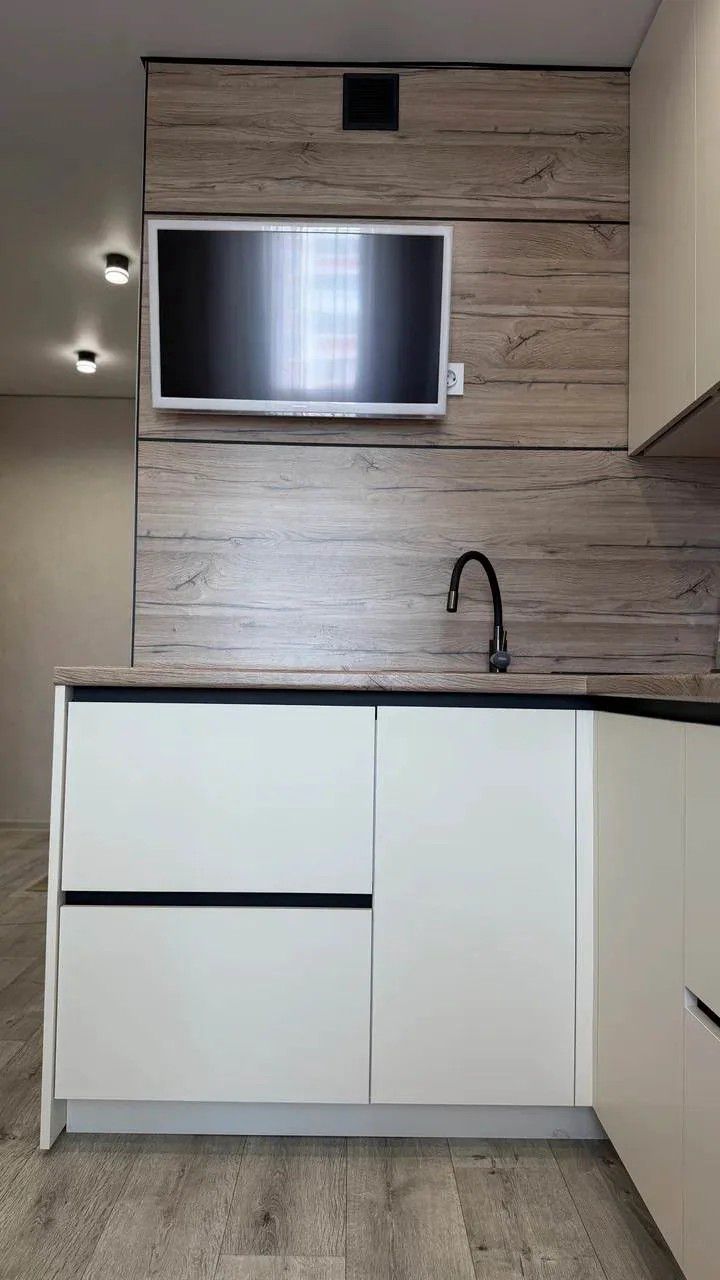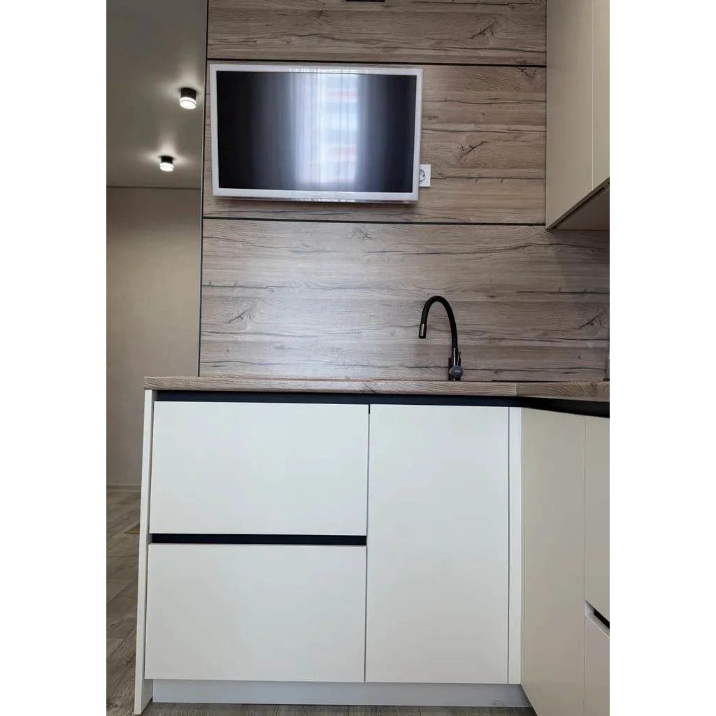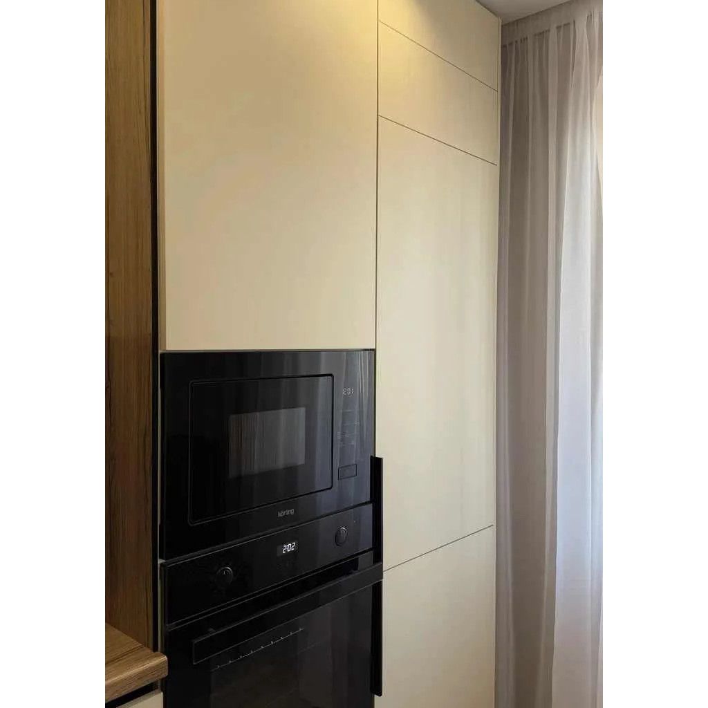 - Встроенная техника без компромиссов – Korting (духовой шкаф, СВЧ, посудомоечная машина, газовая панель), вытяжка Schaub Lorenz и холодильник Midea. Компактные габариты, высокая мощность и единый стильный облик.