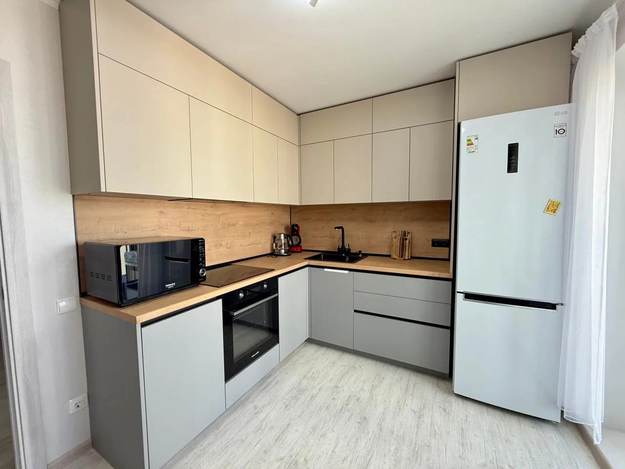 - Плинтус: В тон столешницы (Дуб Бунратти) — для визуального единства.