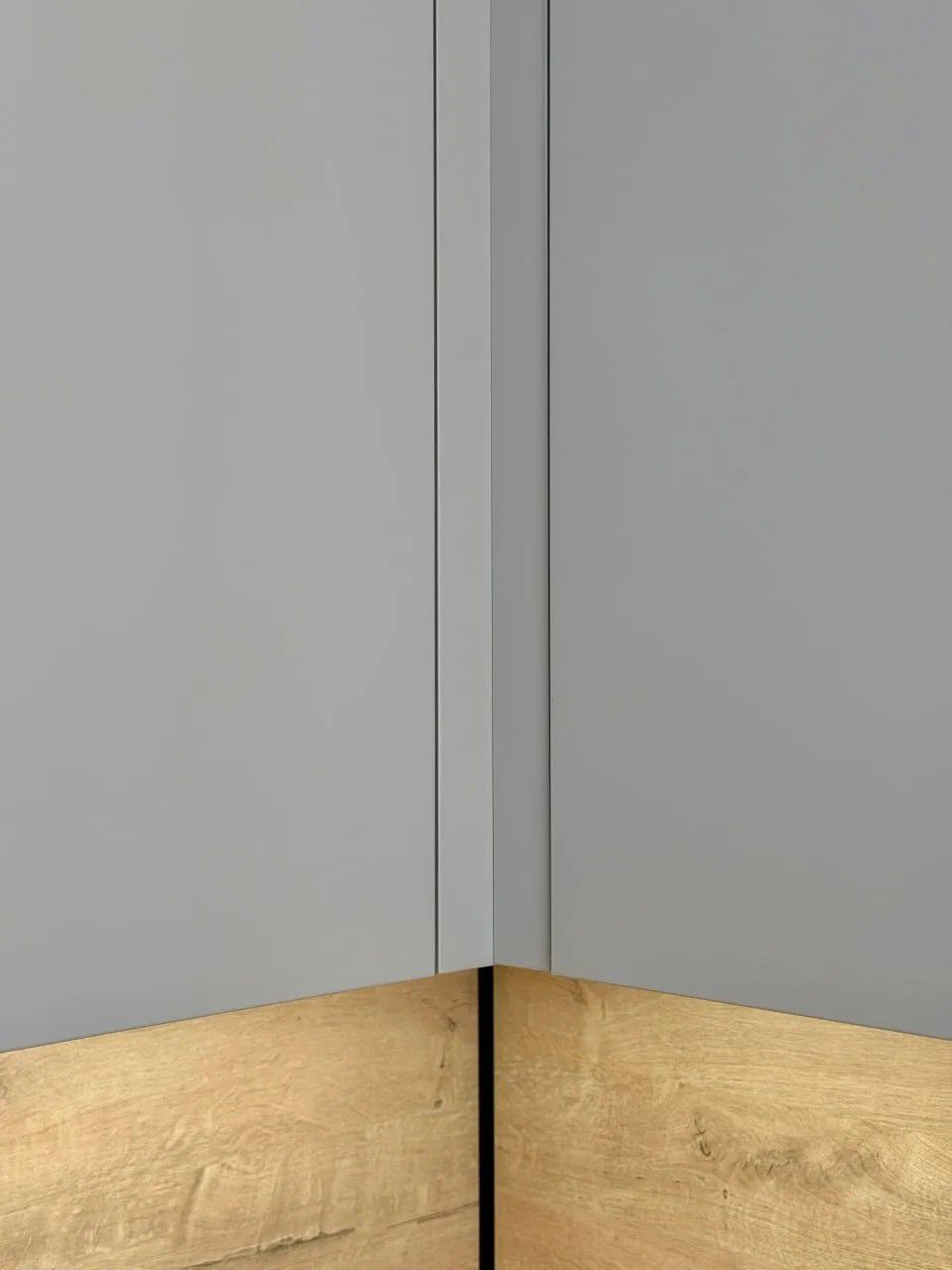 - Каркас: Верх — «Ува Велюр U 7508/IP», Низ — «Ува Титан U 3351». Видимые боковины выполнены в тон фасадов для эффекта монолита.