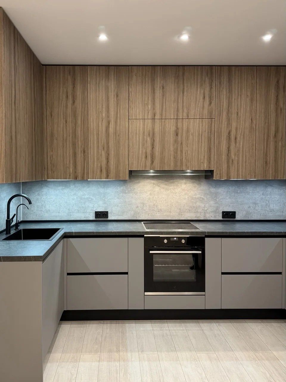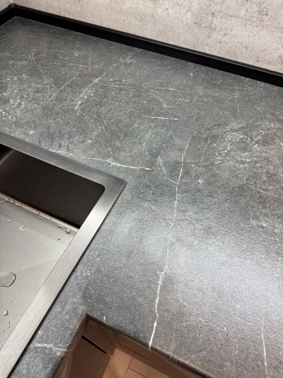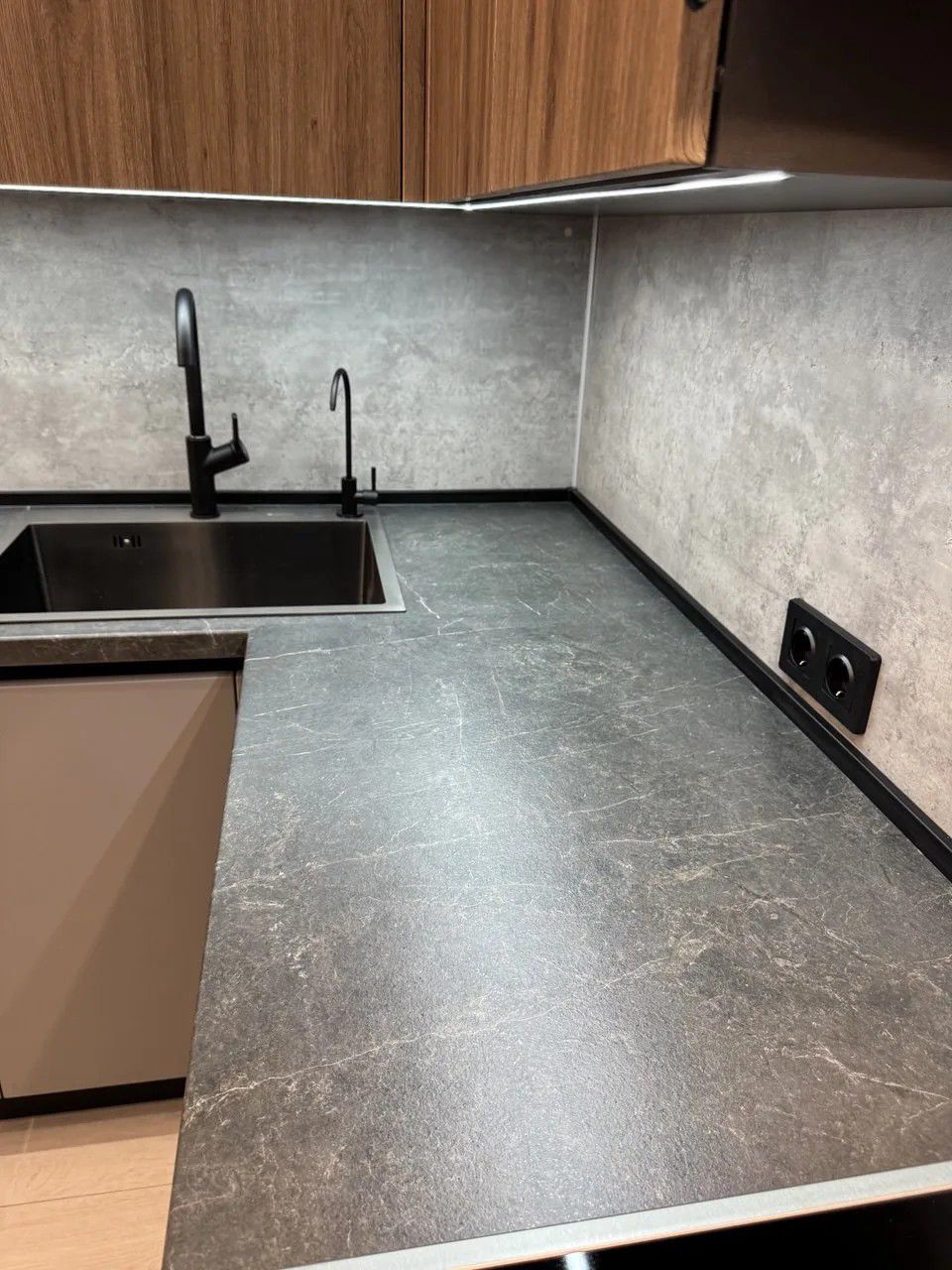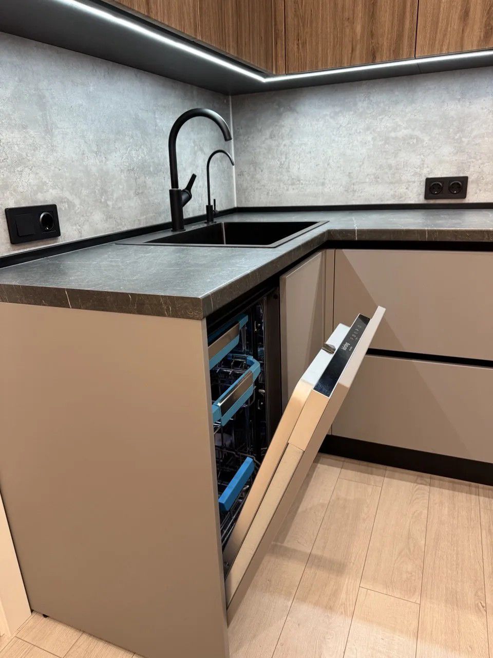 - Графитовая палитра: сочетание корпуса, профиля и мойки создаёт целостный и строгий образ.
