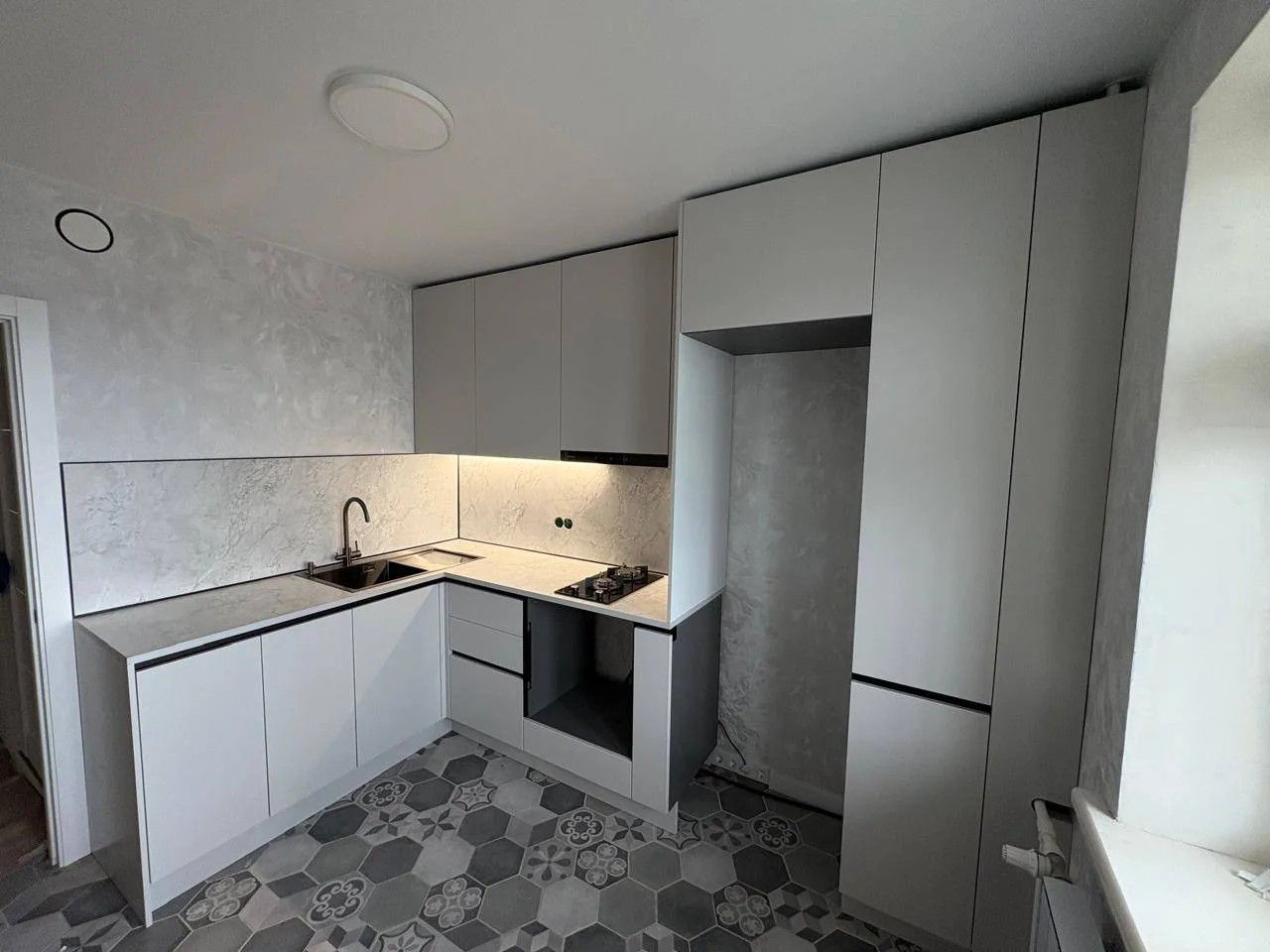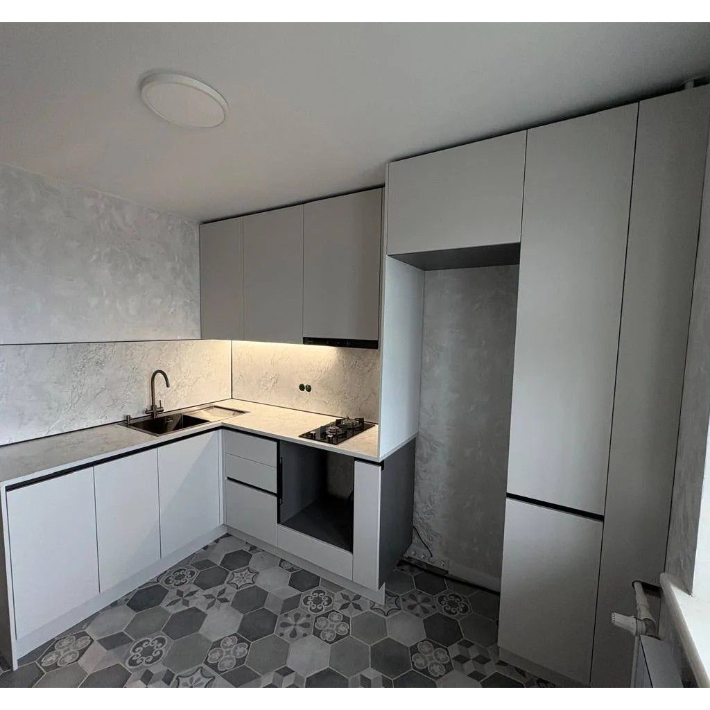 - Цоколь: 150 мм, серый МДФ + надёжные прибивные опоры — завершённый вид и защита нижней части кухни.