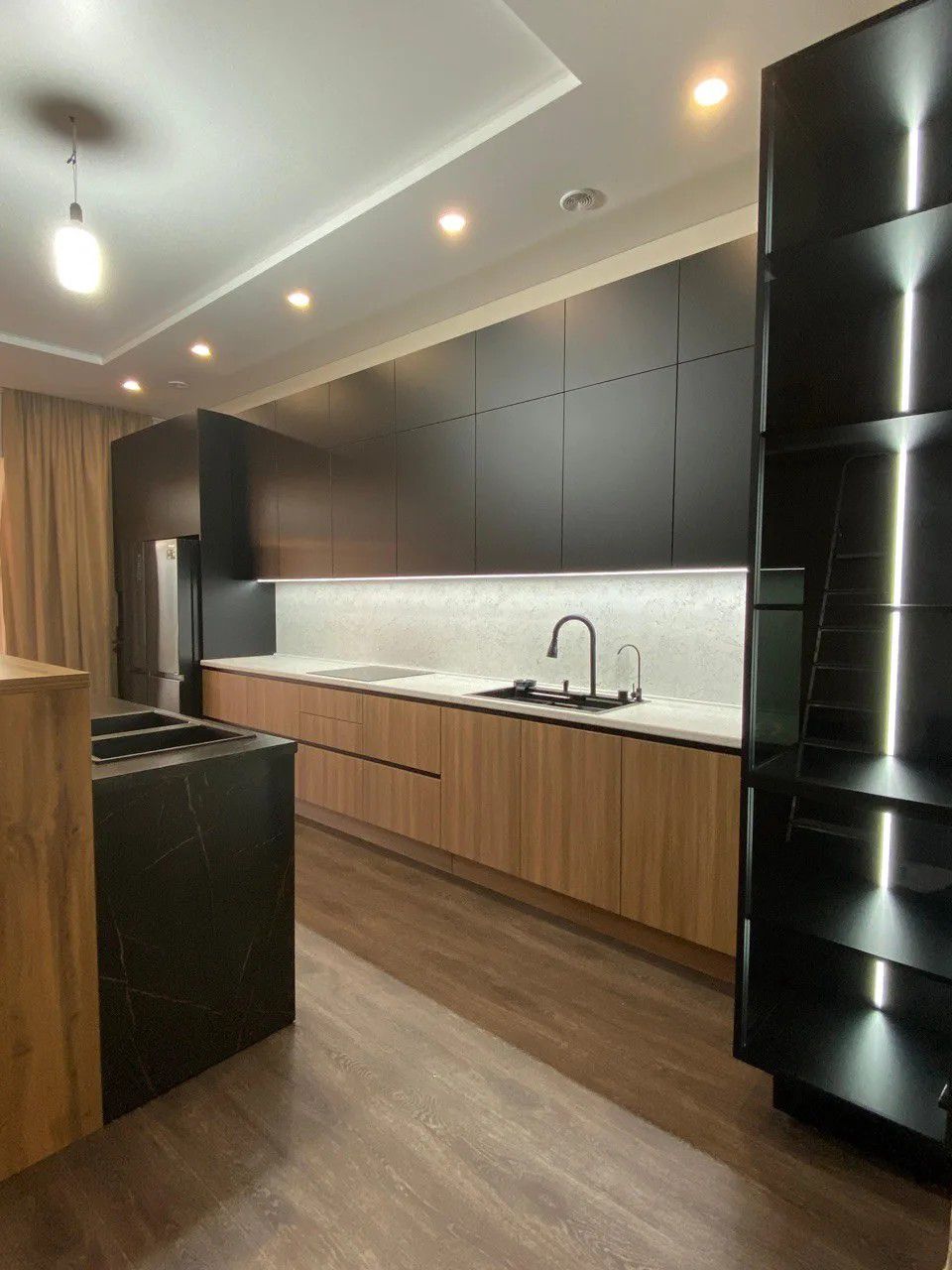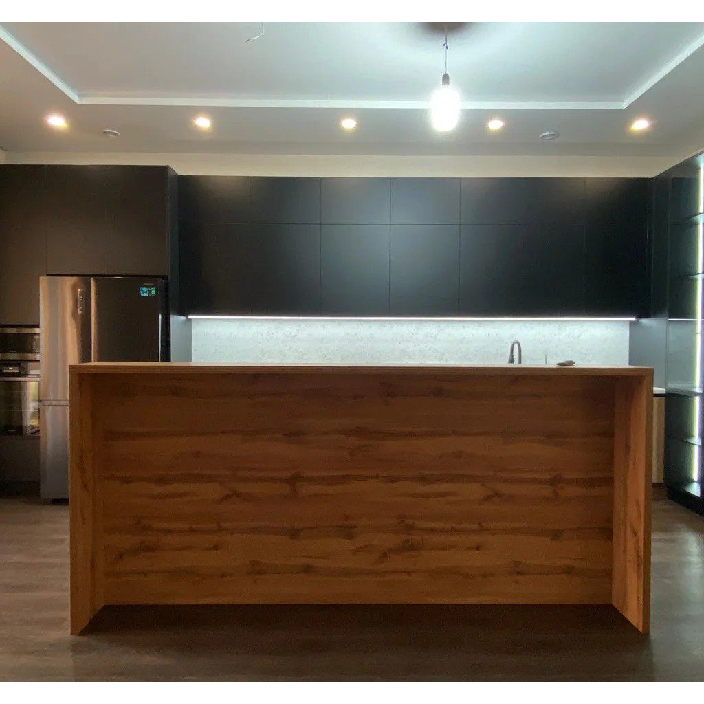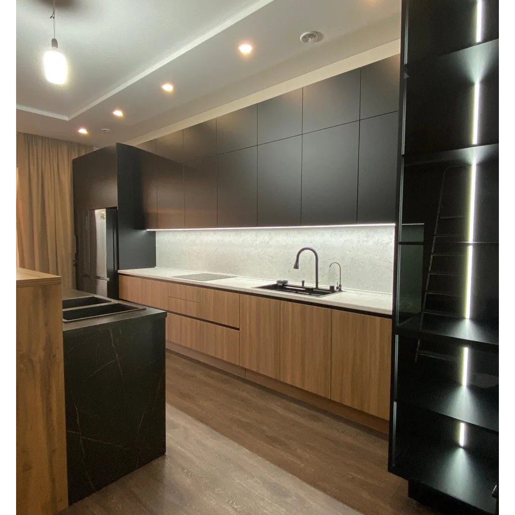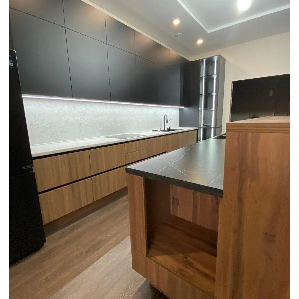 Кухня «NOIR PERU» — это воплощение современного стиля и благородной эстетики. Контрастный дуэт глубокого чёрного матового цвета и тёплых оттенков дуба создаёт интерьер с характером: элегантный, строгий и одновременно уютный. Это пространство для тех, кто ценит премиальное качество, продуманную эргономику и внимание к деталям.
