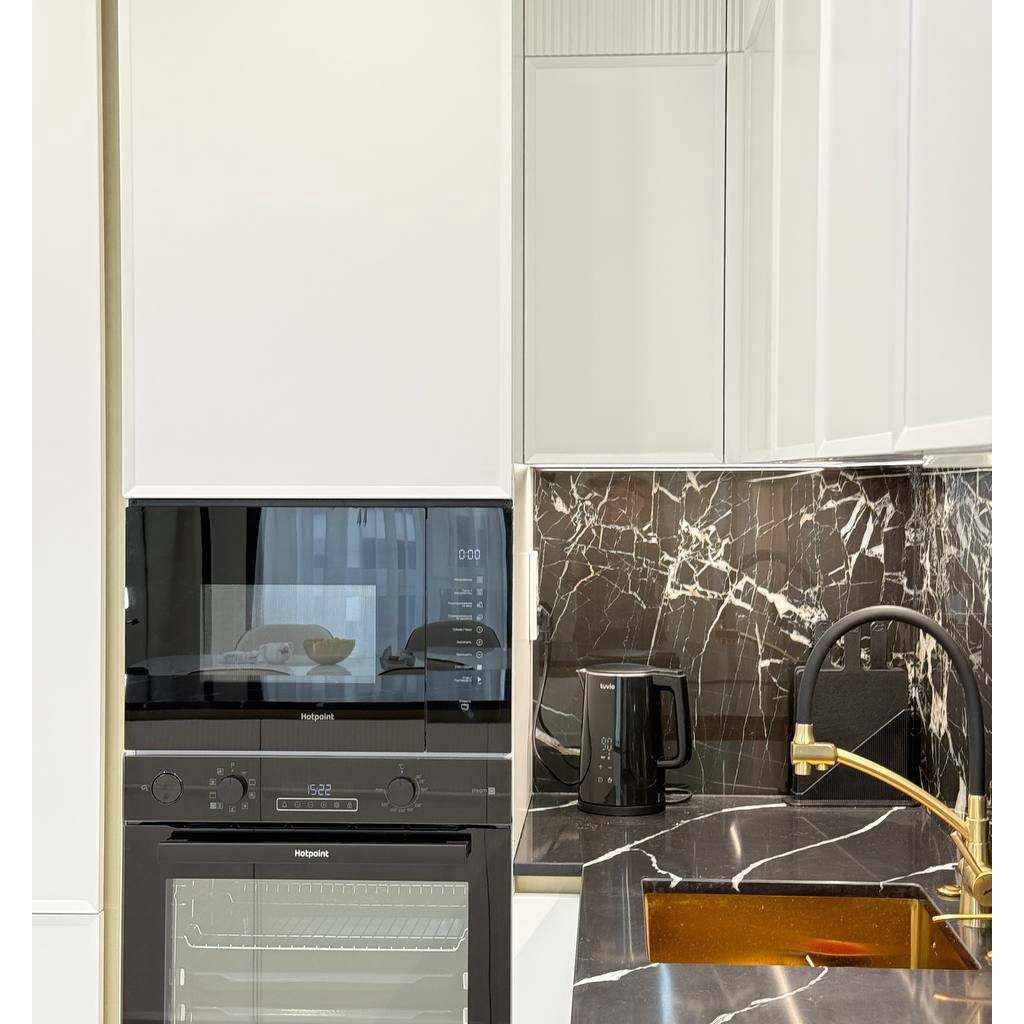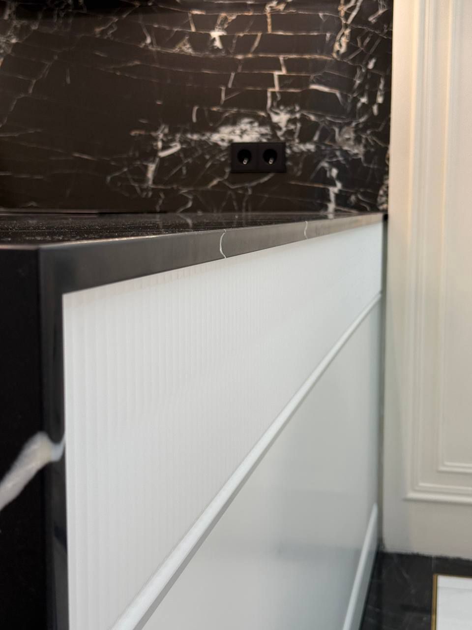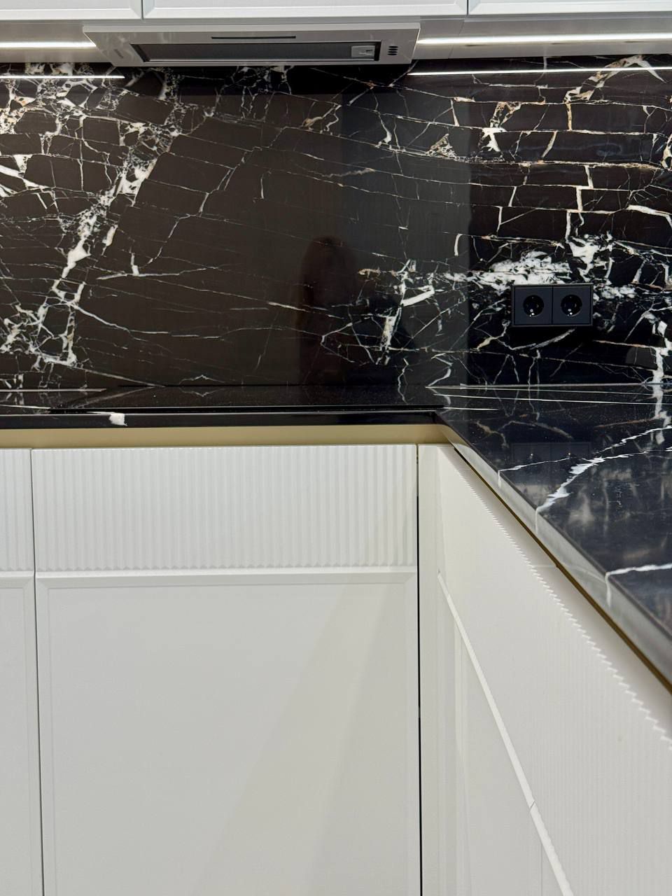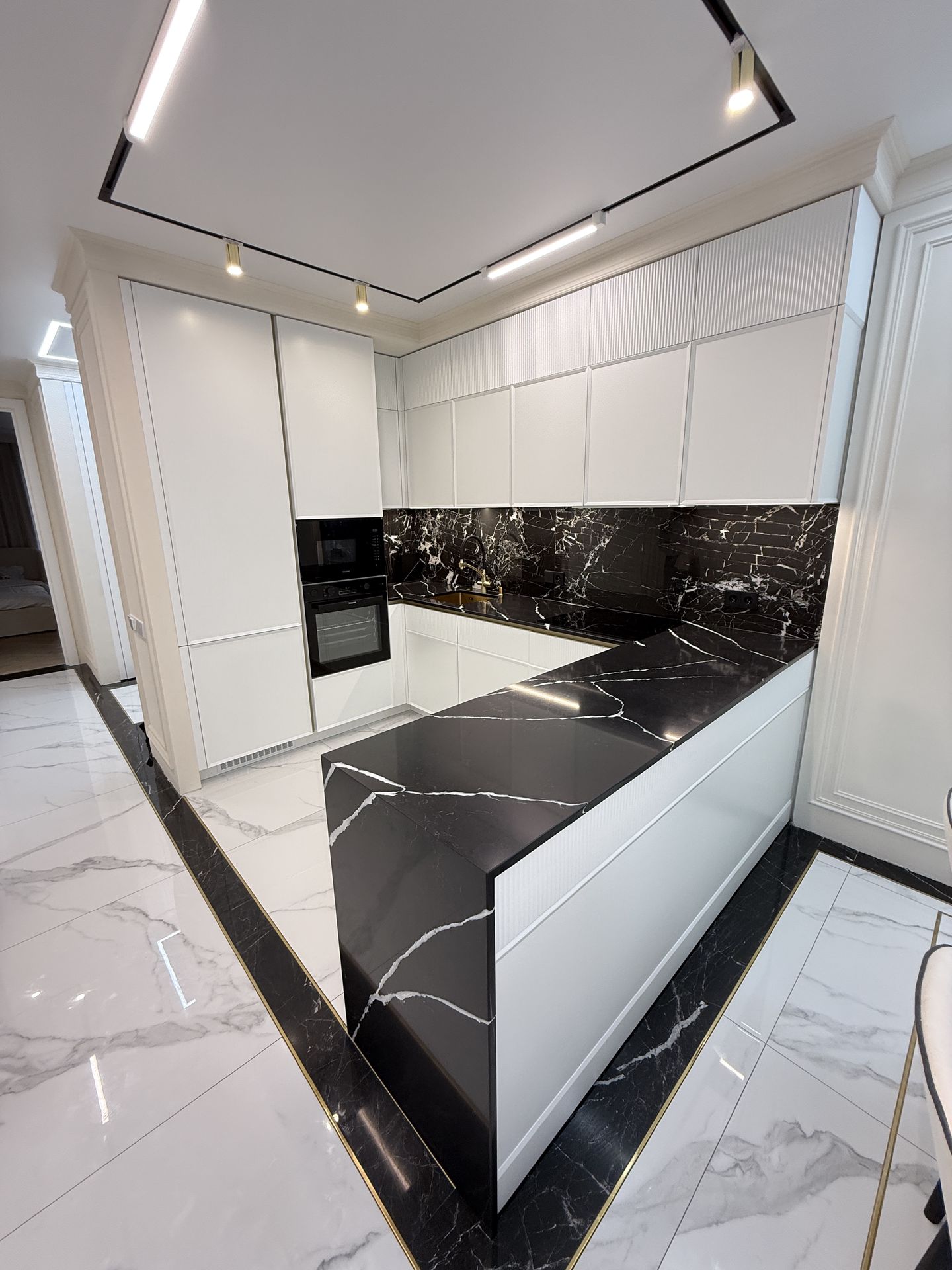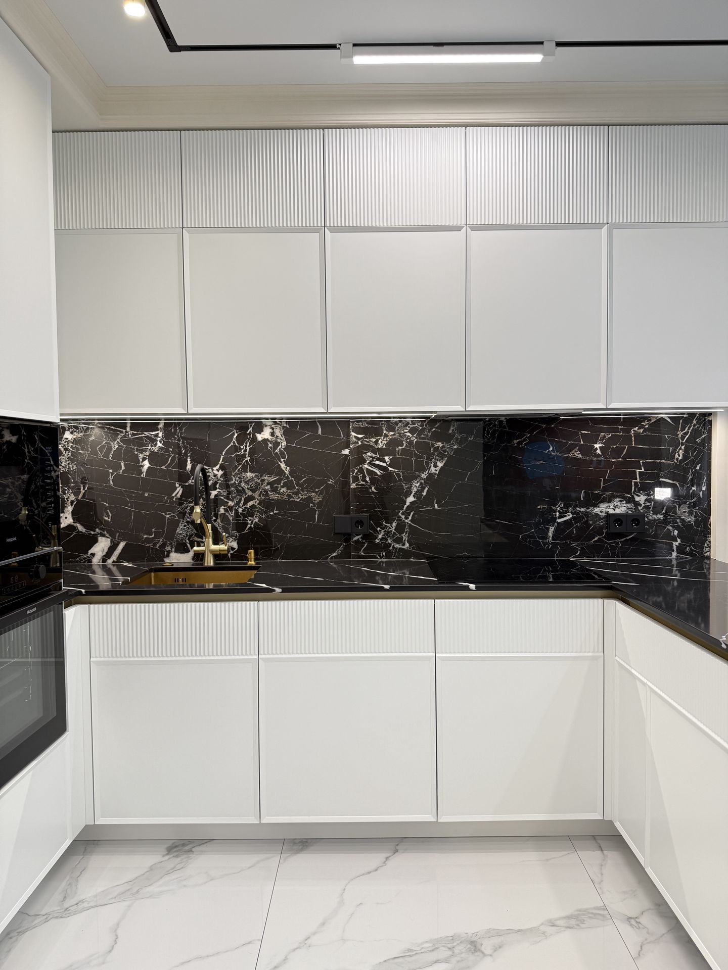 Этот проект — наглядное доказательство того, как индивидуальный подход и внимание к деталям создают не просто кухню, а гармоничное пространство для жизни. Интерьер, построенный на контрастах и чистоте линий, сочетает в себе лаконичность современного стиля и утонченную элегантность.
