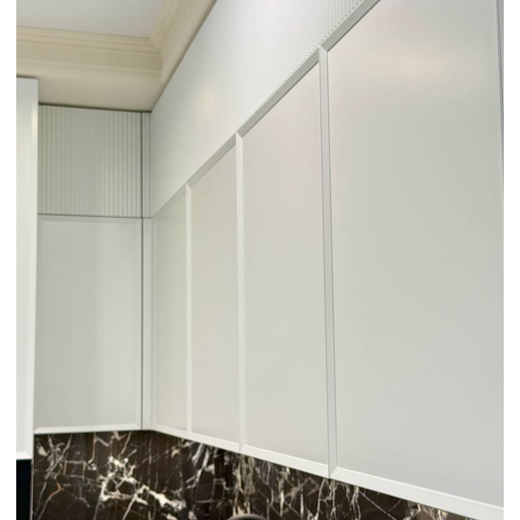 Основой образа стал светлый минимализм, дарящий ощущение простора, чистоты и лёгкости. Белоснежные фасады в матовой эмали Bianco Alpino служат идеальным фоном. Изящная 3D-фрезеровка, вдохновленная мотивами Nolte, добавляет стенам рельефа и глубины, играя со светом и тенями.