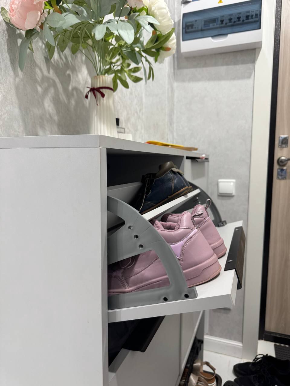 - Специальная секция с наклонной сеткой — удобное хранение обуви